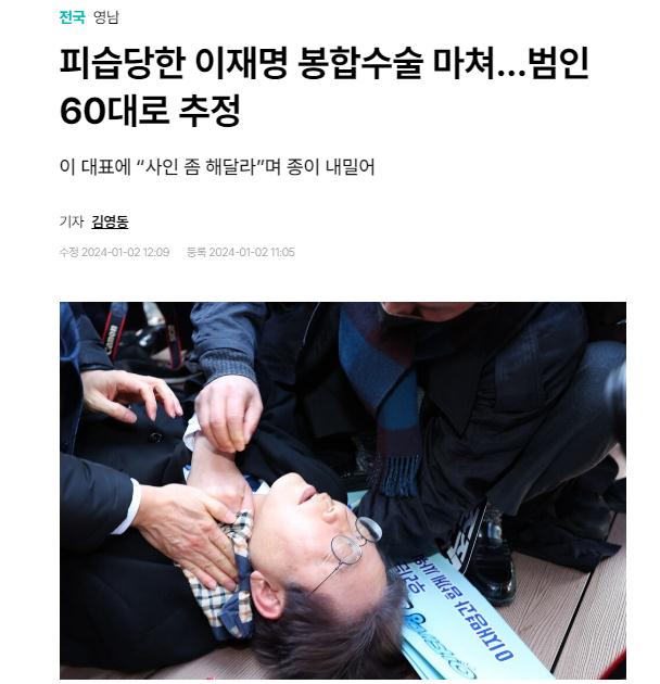 據(jù)報道,李在明2日在釜山出席活動時遇襲,頸部左側(cè)有約1厘米裂傷,在現(xiàn)場接受緊急止血,隨后送醫(yī)治療。當(dāng)?shù)貢r間11點(diǎn)14分左右,李在明接受了縫合手術(shù)。