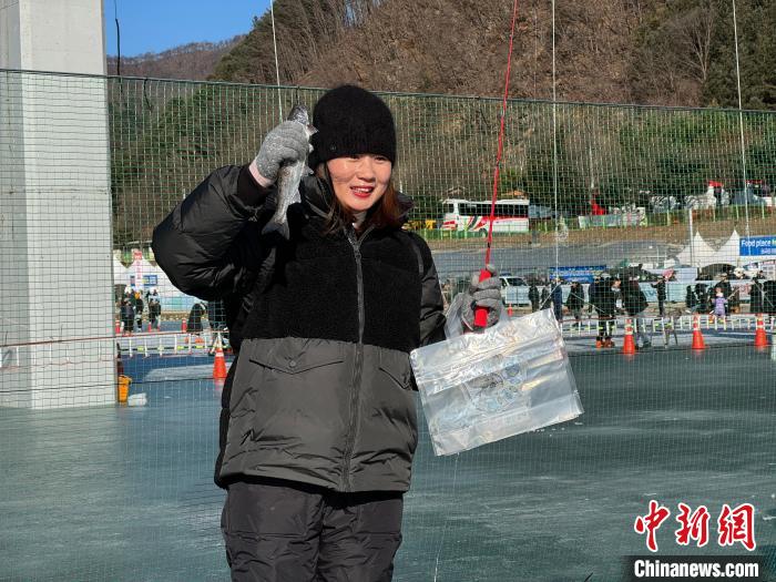 記者在慶典現(xiàn)場(chǎng)看到,特色冰釣場(chǎng)上擠滿游客。男女老少都把魚(yú)竿垂到冰面上事先鑿好的釣洞里,上下擺動(dòng)魚(yú)竿來(lái)吸引冰下游動(dòng)的山鱒魚(yú),沉浸在冰釣的樂(lè)趣之中。游客還可以將釣到的魚(yú)拿到冰場(chǎng)附近的烤場(chǎng)現(xiàn)烤、現(xiàn)吃。據(jù)悉,今年主辦方從韓國(guó)各地的養(yǎng)殖場(chǎng)空運(yùn)來(lái)160噸山鱒魚(yú),滿足游客抓魚(yú)、釣魚(yú)需求。