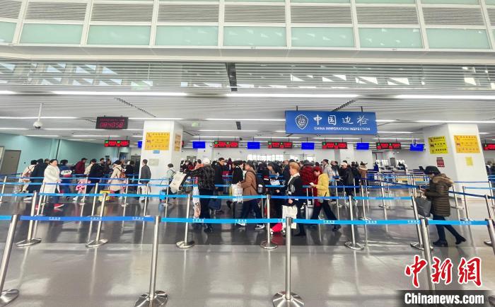 邊檢民警正在使用“入境簡化模式”查驗(yàn)旅客出入境證件。(盧姣 攝)