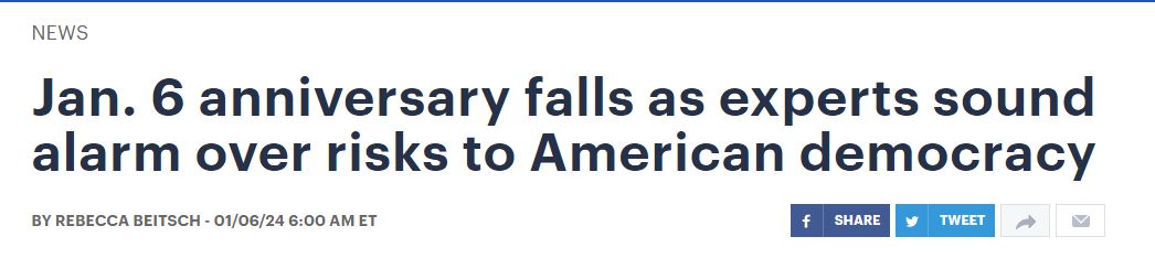 這項民調結果公布之時,正值“國會山騷亂”事件三周年之際,美國也迎來新的選舉年?!秶鴷綀蟆肪W站在6日的報道中再次提到,目前美國出現(xiàn)了一系列與民主狀況有關的令人不安的跡象。