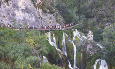 克羅地亞普利特維采湖國家公園是中國九寨溝國家級自然保護區(qū)的“姐妹”自然遺產地。兩者同屬喀斯特地貌,是世界非常罕見的冷水鈣華景觀。中國科學院成都生物研究所與克羅地亞薩格勒布大學合作成立“中國—克羅地亞生物多樣性和生態(tài)系統(tǒng)服務‘一帶一路’聯(lián)合實驗室”,為兩國世界自然遺產地生態(tài)保育作出重要貢獻。圖為當?shù)赜慰驮谄绽鼐S采湖國家公園參觀。