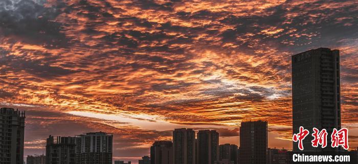 中新網(wǎng)昆明1月11日電 (黃興鴻)11日黃昏時(shí)分,云南昆明、德宏、臨滄等地的天空出現(xiàn)密集的“魚鱗云”。在夕陽的映照下,似霞似錦,如夢如幻。眾多網(wǎng)友在手機(jī)上的社交平臺(tái)上狂熱“曬”云,為彩云之南“上分”。