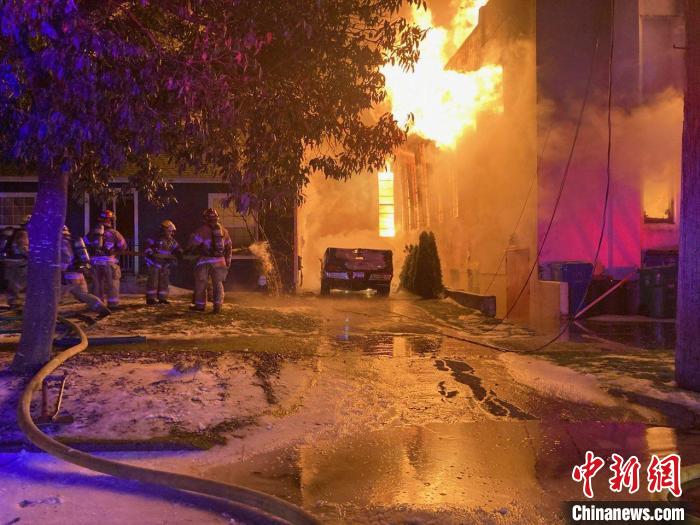 當?shù)貢r間1月14日,消防員試圖撲滅發(fā)生在美國俄勒岡州波特蘭東北部一座教堂的大火。(波特蘭消防救援部門供圖)