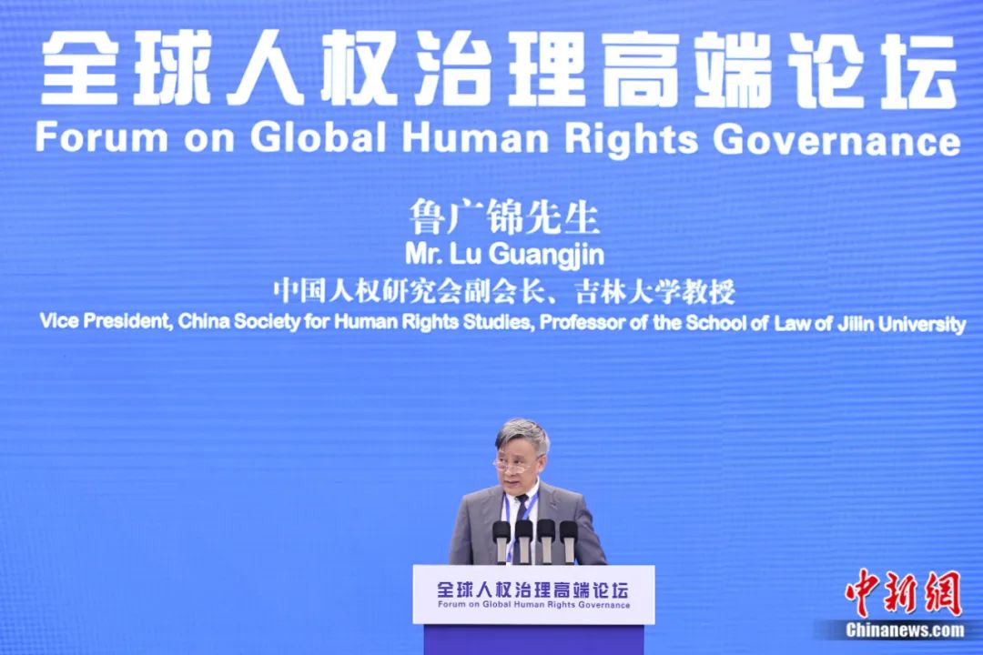 2023年6月15日,全球人權(quán)治理高端論壇在北京舉行。中國人權(quán)研究會(huì)副會(huì)長、吉林大學(xué)教授魯廣錦進(jìn)行大會(huì)發(fā)言。蔣啟明 攝