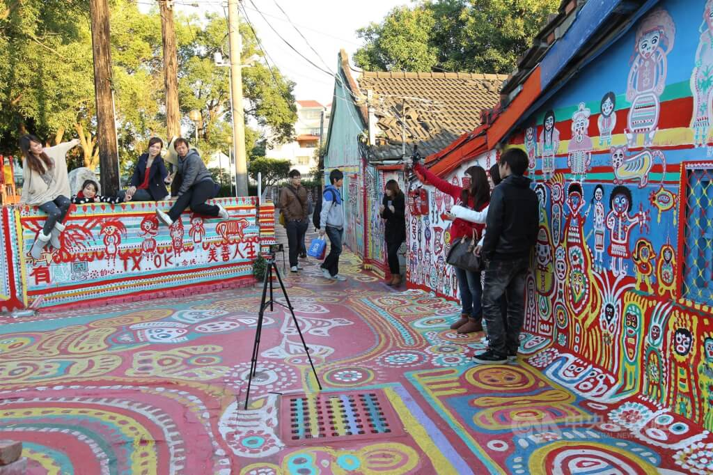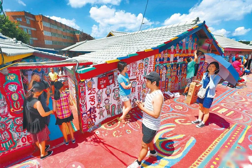 五彩繽紛、充滿童趣的畫風(fēng)讓老舊眷村增添了生機(jī),每逢節(jié)假日,大量民眾前來參觀打卡。圖片來源:中時(shí)新聞網(wǎng)