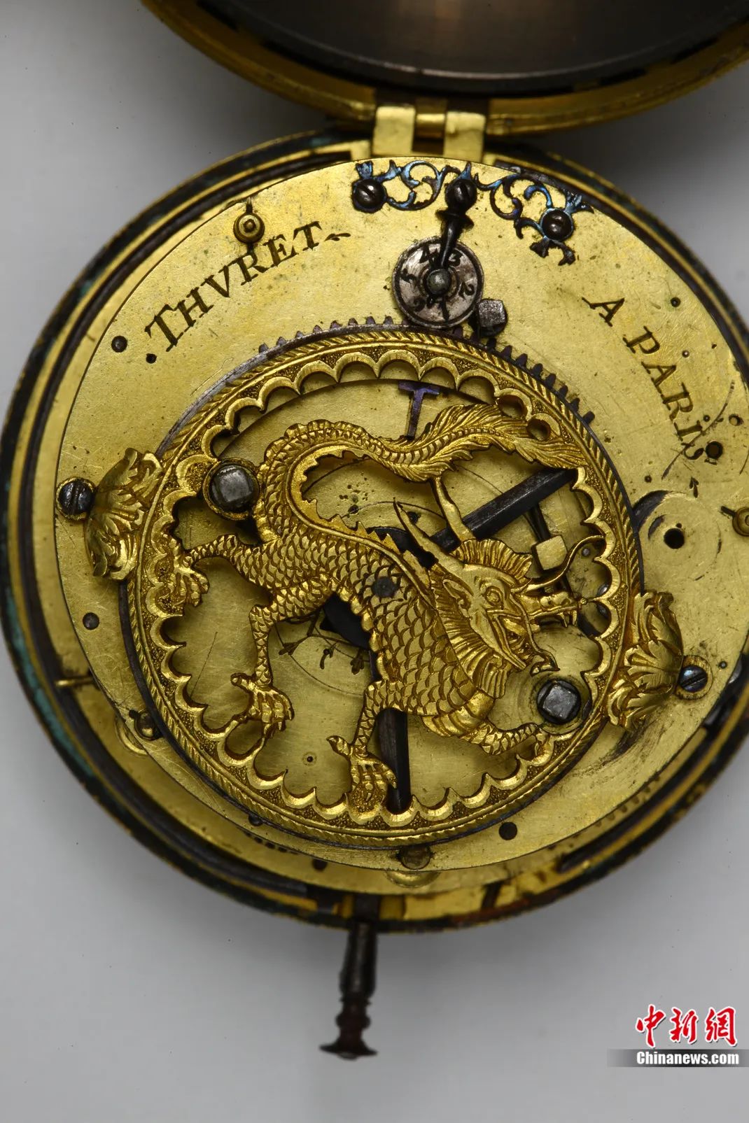 中新社記者:這只出自法國宮廷御用鐘表匠之手的懷表,為何會在內(nèi)部雕刻中國龍的形象?