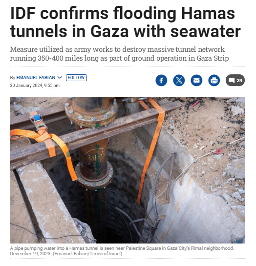 據(jù)報(bào)道,以軍在一份聲明中表示,以部隊(duì)和國(guó)防部官員共同開(kāi)發(fā)了“幾種在加沙地帶向哈馬斯地下隧道注入高流量水的工具”,并補(bǔ)充說(shuō),這是“以軍用于處理(哈馬斯)地道的各類工具之一”。