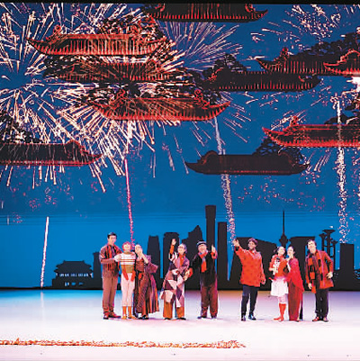 舞臺(tái)上,紅彤彤的燈籠、喜慶的春聯(lián)、熱鬧的廟會(huì)奏響了中國農(nóng)歷新年的序曲;“團(tuán)團(tuán)”和“圓圓”家的年夜飯彰顯了中國禮儀之邦的待客之道、尊老愛幼的傳統(tǒng)美德,一張全家福更傳達(dá)了中國人對(duì)親情的重視和對(duì)團(tuán)圓的向往;“胡桃夾子”大戰(zhàn)“年”獸,則充滿童趣地演繹了“過年”的傳說;而當(dāng)寓意吉祥的仙鶴在蒼勁的松樹下迎著朝陽翩翩起舞,西方芭蕾藝術(shù)在中國文化意象中煥發(fā)出了美妙的東方神韻;扇子舞、絲綢舞、風(fēng)箏舞、陀螺舞……一個(gè)個(gè)頗具中國元素的慶典場面讓阿聯(lián)酋觀眾游歷在瑰麗多姿的中國傳統(tǒng)文化中。
