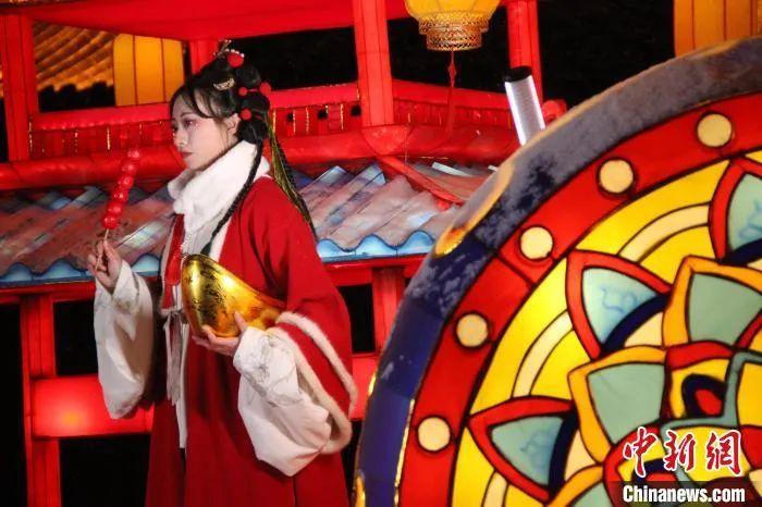 圖為西安華清宮景區(qū)內(nèi)的唐宮大型燈組。 張遠(yuǎn) 攝