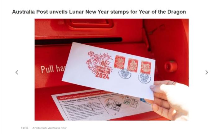 澳大利亞郵政近日推出了龍年特別版中國(guó)春節(jié)郵票。圖片澳大利亞第九新聞網(wǎng)站截圖。