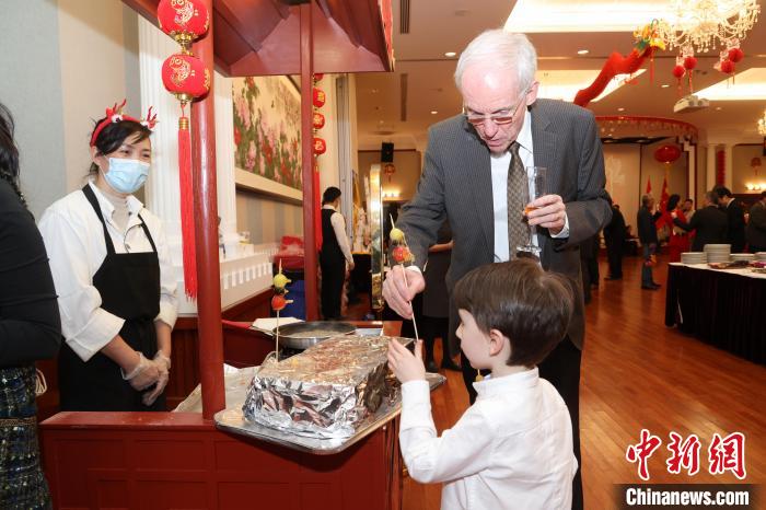 當?shù)貢r間2月1日晚,加拿大首都渥太華,中國駐加拿大大使館舉行2024年春節(jié)招待會。圖為現(xiàn)場制作的中國風味小吃冰糖葫蘆吸引來賓品嘗。中新網(wǎng)記者 余瑞冬 攝
