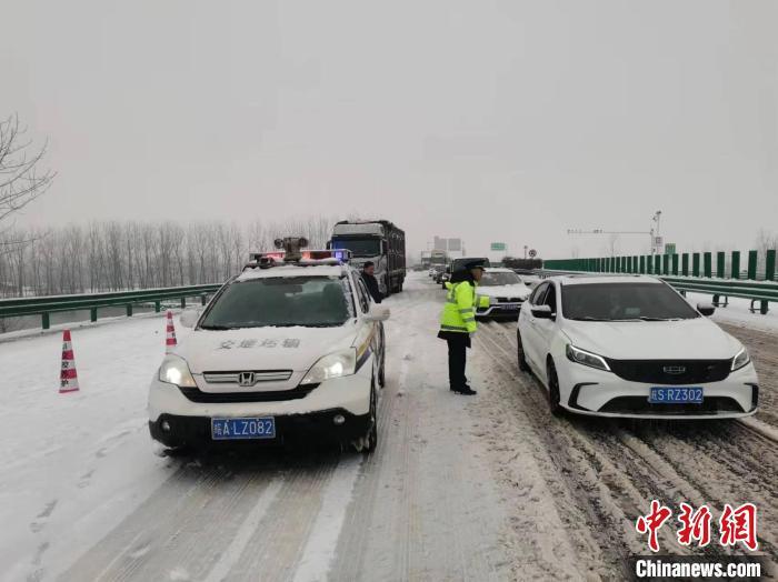 日前,S06泗蚌高速蚌五段,蚌五固大隊(duì)為鏟雪車輛護(hù)尾。安徽省高速公路路政支隊(duì) 供圖