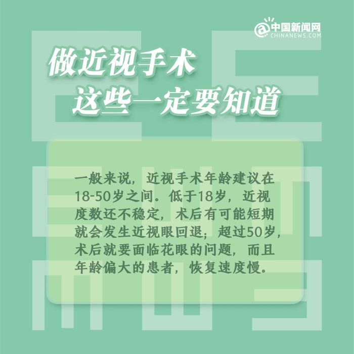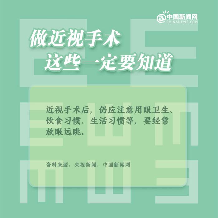中新網(wǎng)2月4日電 ①近視手術(shù),分為角膜激光手術(shù)和眼內(nèi)鏡植入手術(shù);②一般來說,近視手術(shù)的時間建議在18-50歲之間;③術(shù)后1個月內(nèi),避免異物進入眼睛,不要揉眼和劇烈運動;④術(shù)后仍應(yīng)注意用眼衛(wèi)生、飲食習(xí)慣、生活習(xí)慣等,要經(jīng)常放眼遠眺。