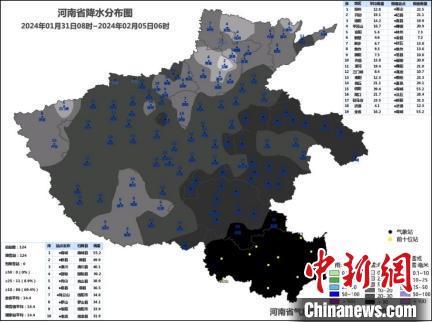 2024年1月31日8時(shí)至2月5日6時(shí)河南省降水量實(shí)況。河南省氣象局制圖
