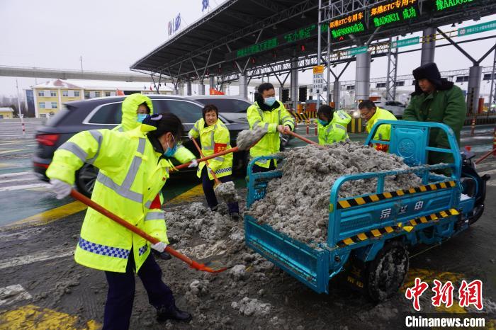 圖為2月1日,路政工作人員在鄭州機(jī)場(chǎng)高速鄭州南站除雪。中新網(wǎng)記者 韓章云 攝