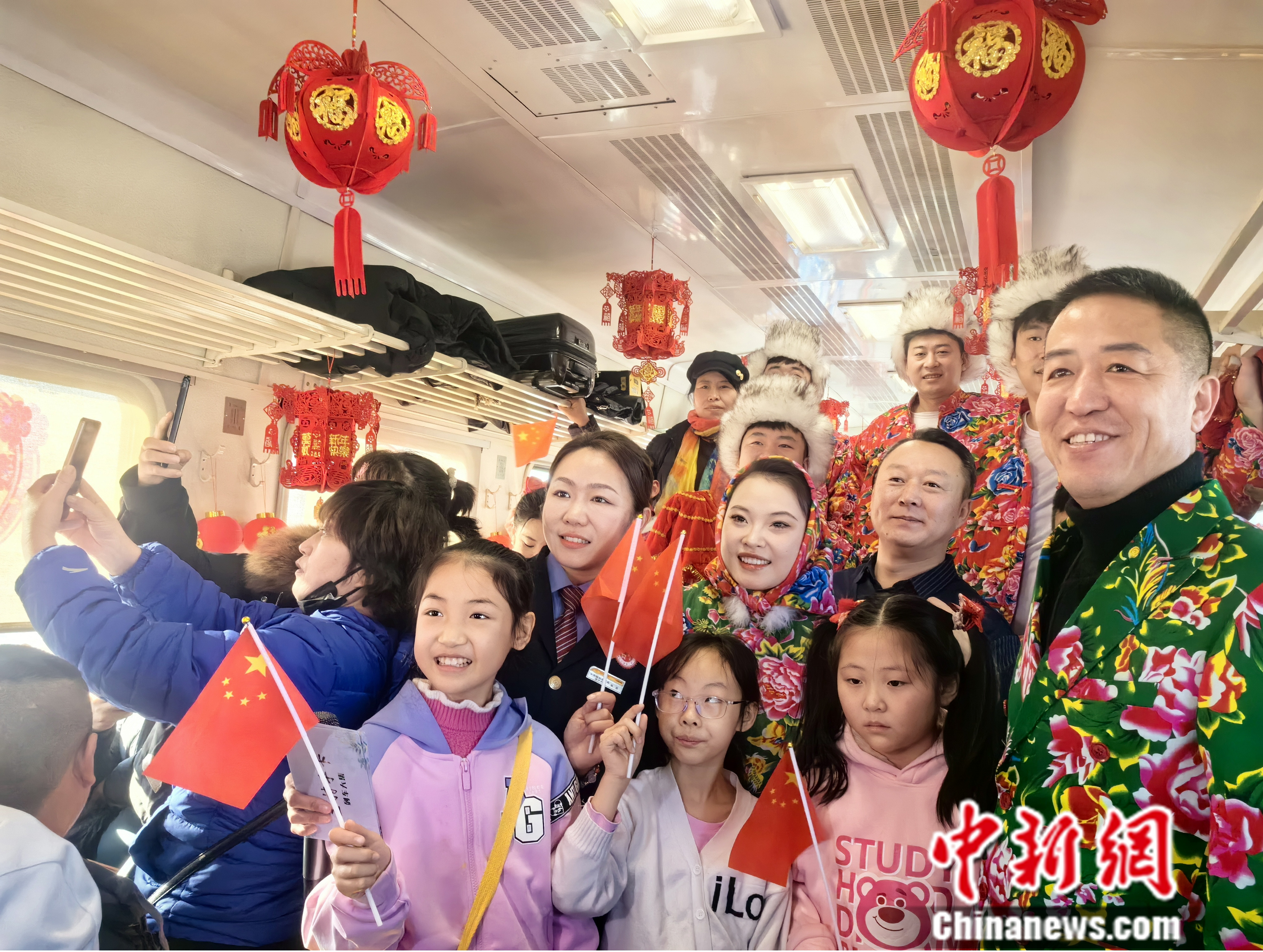 在山東,春節(jié)前,山東“黃河大集”也登陸了山東環(huán)線列車。國鐵濟(jì)南局把富有創(chuàng)意、接地氣的賀年會產(chǎn)品布展到火車上,在行駛的列車上舉辦多彩的民俗文化活動,讓春運(yùn)旅客在車廂里趕上了“大集”。