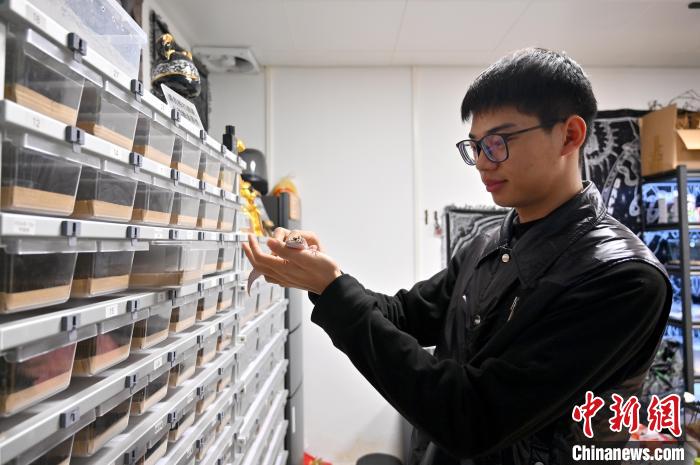 2月5日,廣西南寧一爬寵店內(nèi),工作人員檢查寄養(yǎng)爬寵健康狀況?!∮峋?攝