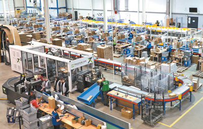 在小城東郊的工業(yè)開(kāi)發(fā)區(qū),MBB物流公司的智能倉(cāng)庫(kù)里一片忙碌景象:十幾名工人在智能機(jī)器人的協(xié)助下,將一件件快遞包裹進(jìn)行快速貼碼分裝,并通過(guò)傳送帶直接送至物流貨車車廂內(nèi)。24小時(shí)內(nèi),這些快遞就會(huì)被送到波蘭、德國(guó)的消費(fèi)者手中;48小時(shí)內(nèi),其他歐盟國(guó)家的消費(fèi)者也能收到各自的商品。因商家需在農(nóng)歷新年假期到來(lái)之前集中補(bǔ)貨,MBB物流公司業(yè)務(wù)量猛增,但各處運(yùn)轉(zhuǎn)都井然有序。