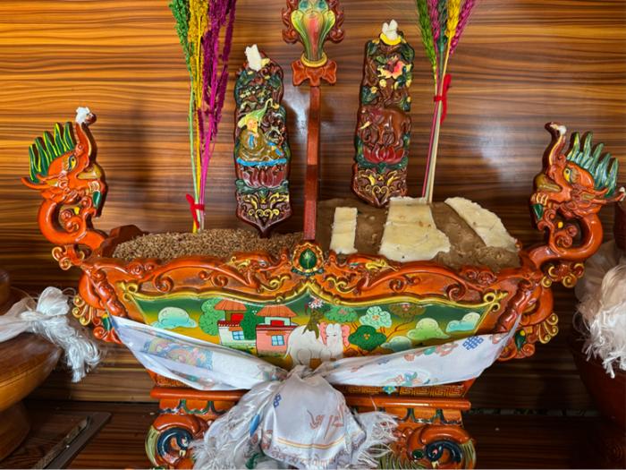分別盛入炒麥粒和糌粑,