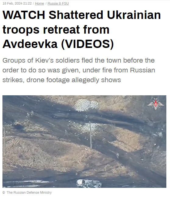 中新網(wǎng)2月19日電 綜合俄羅斯媒體報道,當(dāng)?shù)貢r間18日,俄羅斯國防部發(fā)布了烏克蘭武裝部隊從阿夫杰耶夫卡潰逃的視頻。