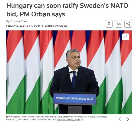 據(jù)報道,歐爾班表示:“這是個好消息,我們與瑞典的爭端很快就會得到解決。”