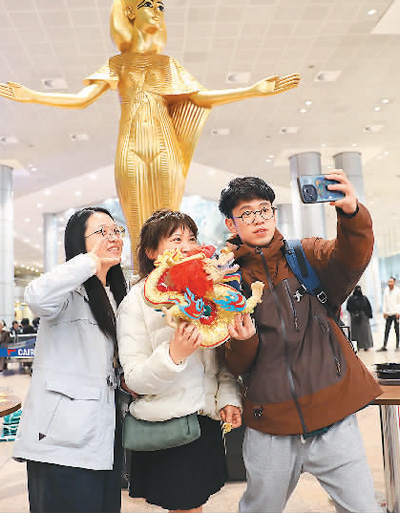 埃及是中國游客春節(jié)假期出境游的主要目的地之一。2月10日,開羅國際機場舉辦“歡迎中國游客來埃及過大年”儀式,迎接當天抵達的300余名中國游客?!敖鹱炙?、獅身人面像、埃及博物館、卡爾納克神廟……今年來埃及的中國游客尤其多,幾乎每個景點都能看到中國游客的身影。”埃及導游哈迪布告訴記者,春節(jié)是他最忙碌的時期。