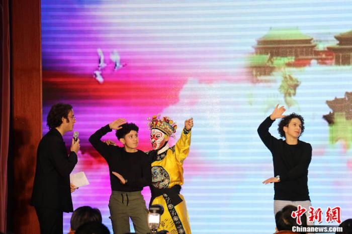 戲曲名段表演、法語(yǔ)經(jīng)典歌曲串燒……你方唱罷我登場(chǎng),中法青年在文藝表演中秀出各自的文化風(fēng)采。由中國(guó)戲曲學(xué)院學(xué)生代表帶來(lái)的民族器樂演奏、經(jīng)典戲曲名段聯(lián)唱獲得了臺(tái)下的陣陣喝彩。在京劇片段《大鬧天宮》表演結(jié)束后,法國(guó)少年受邀與孫悟空扮演者互動(dòng)。