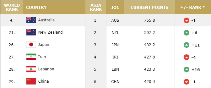 世界排名上,日本男籃排名第26位(亞洲第3位),中國(guó)男籃位列第29位(亞洲第6位)。