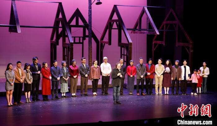《寶島一村》專(zhuān)屬版第100場(chǎng)演出謝幕前,賴(lài)聲川攜演員向臺(tái)下觀(guān)眾鞠躬致意。(受訪(fǎng)者供圖)