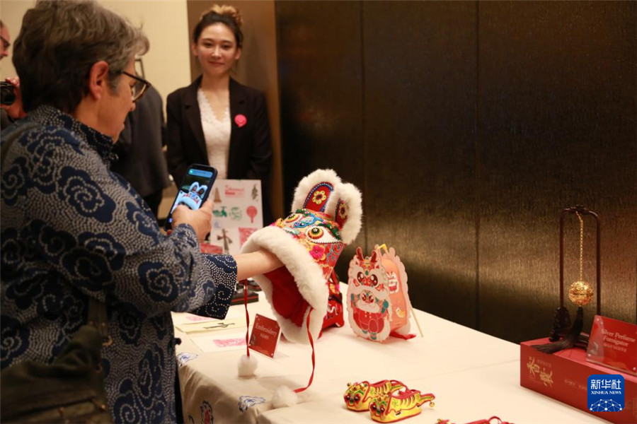 2月27日,在美國紐約,一名參會者在陜西省文化和旅游廳與中國駐紐約旅游辦事處舉辦的陜西文化旅游推介會上拍攝陜西民俗產(chǎn)品。新華社記者 劉亞南 攝