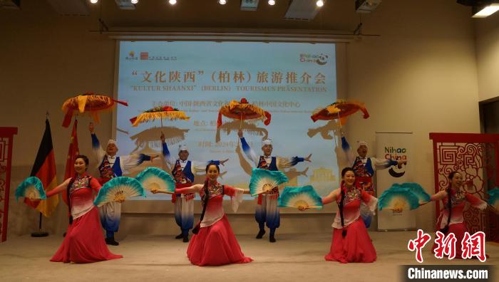 推介會(huì)現(xiàn)場(chǎng)還設(shè)置了陜西特色文創(chuàng)產(chǎn)品展示區(qū),展出農(nóng)民畫、剪紙、石雕、泥塑、棗木雕等非遺產(chǎn)品,讓與會(huì)嘉賓親身體驗(yàn)陜西的民間藝術(shù)和傳統(tǒng)技藝。來(lái)自陜西的藝術(shù)家們?yōu)閬?lái)賓們表演了陜北大秧歌、腰鼓,演唱了《山那邊》《趕牲靈》《淚蛋蛋拋在沙蒿蒿林》《一對(duì)對(duì)鴛鴦水上漂》等極富特色的陜北民歌。推介會(huì)上來(lái)賓們交流探討陜西與德國(guó)在文化旅游領(lǐng)域的合作機(jī)遇和發(fā)展前景,氣氛熱烈。