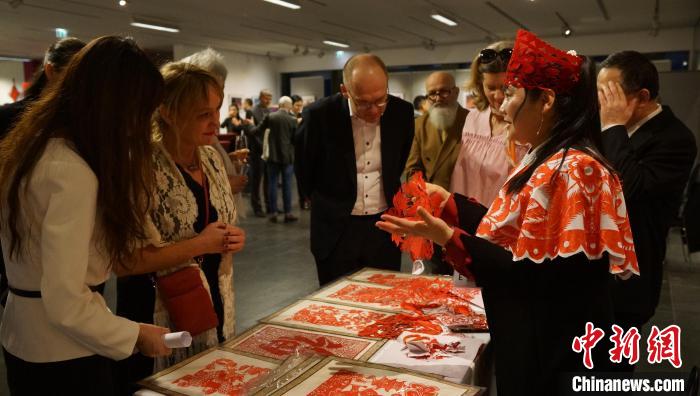 來(lái)賓欣賞剪紙非遺手工藝。柏林中國(guó)文化中心供圖