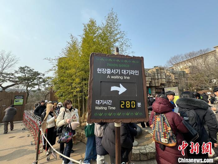 3月3日早上8時(shí)許,中新社記者來到位于韓國京畿道龍仁市的三星愛寶樂園,此時(shí)距離開園時(shí)間10時(shí)尚早,但正門外已排起百米長隊(duì),大批民眾等待入園與大熊貓“福寶”告別。