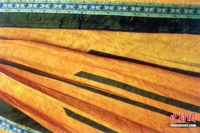 明清時期的“朱紅地纏枝紋暗花紗馬面裙”局部。毛建軍 攝