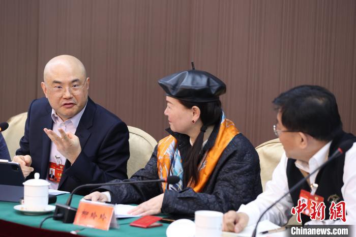 3月5日,全國政協(xié)十四屆二次會議僑聯(lián)界小組會議在北京舉行。圖為全國政協(xié)委員柳玲玲(中)和全國政協(xié)委員洪明基(左)。中新社記者 蔣啟明 攝