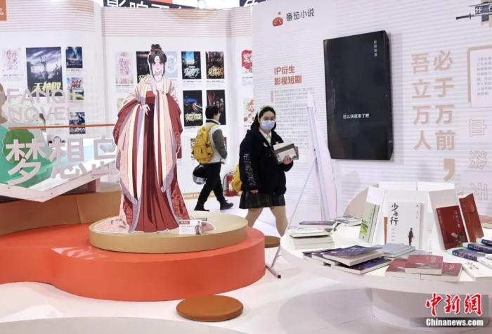 2023年3月,北京,觀眾在第六屆中國(guó)“網(wǎng)絡(luò)文學(xué) ”大會(huì)網(wǎng)文企業(yè)特色展區(qū)參觀。易海菲 攝
