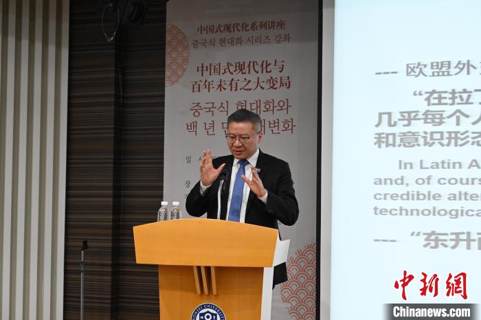 3月13日,復(fù)旦大學(xué)特聘教授、復(fù)旦大學(xué)中國(guó)研究院院長(zhǎng)張維為以“百年未有之大變局與中國(guó)式現(xiàn)代化”為主題在韓進(jìn)行演講。首爾中國(guó)文化中心 供圖