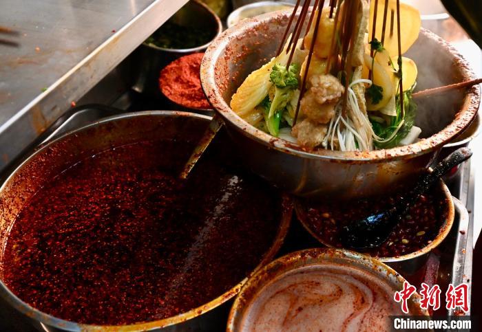 “我們會一次性熬制可以用20天左右的老料,保存起來,煮湯時挖取幾勺,加水熬制數(shù)小時,才能烹飪出濃濃的湯底,煮出來的菜才香?!睏罾^兵說,每家麻辣燙的紅油辣子也各有“獨家秘方”,大多用八角、香葉、花椒等香料磨粉調(diào)味,加一些白芝麻,再用炸香的熱油一潑,辣香味隨之襲來。
