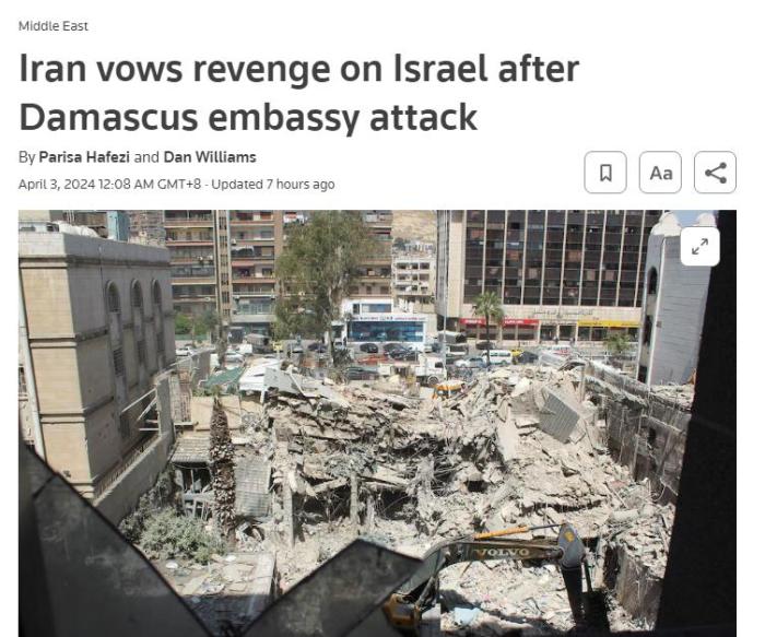 據(jù)此前報道,伊朗伊斯蘭革命衛(wèi)隊當?shù)貢r間1日表示,伊朗駐敘利亞大使館領事部門建筑遭以色列襲擊,造成包括高級將領在內(nèi)的多名成員死亡。