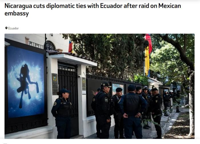據(jù)報道,公告稱,尼方堅決反對并譴責(zé)厄政府“公然違反國際法的行為”。厄安全部隊(duì)本應(yīng)履行保護(hù)厄公民秩序、安全及生命的職責(zé),卻在厄首都基多進(jìn)行了“不正常且令人斥責(zé)”的行動。