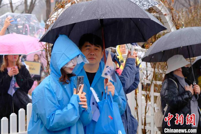 當日上午8時許,中新社記者來到位于韓國京畿道龍仁市的愛寶樂園正門看到,盡管距離樂園正式營業(yè)還有約兩小時,樂園門外已有大批民眾冒雨排起長隊,等待送別“福寶”。