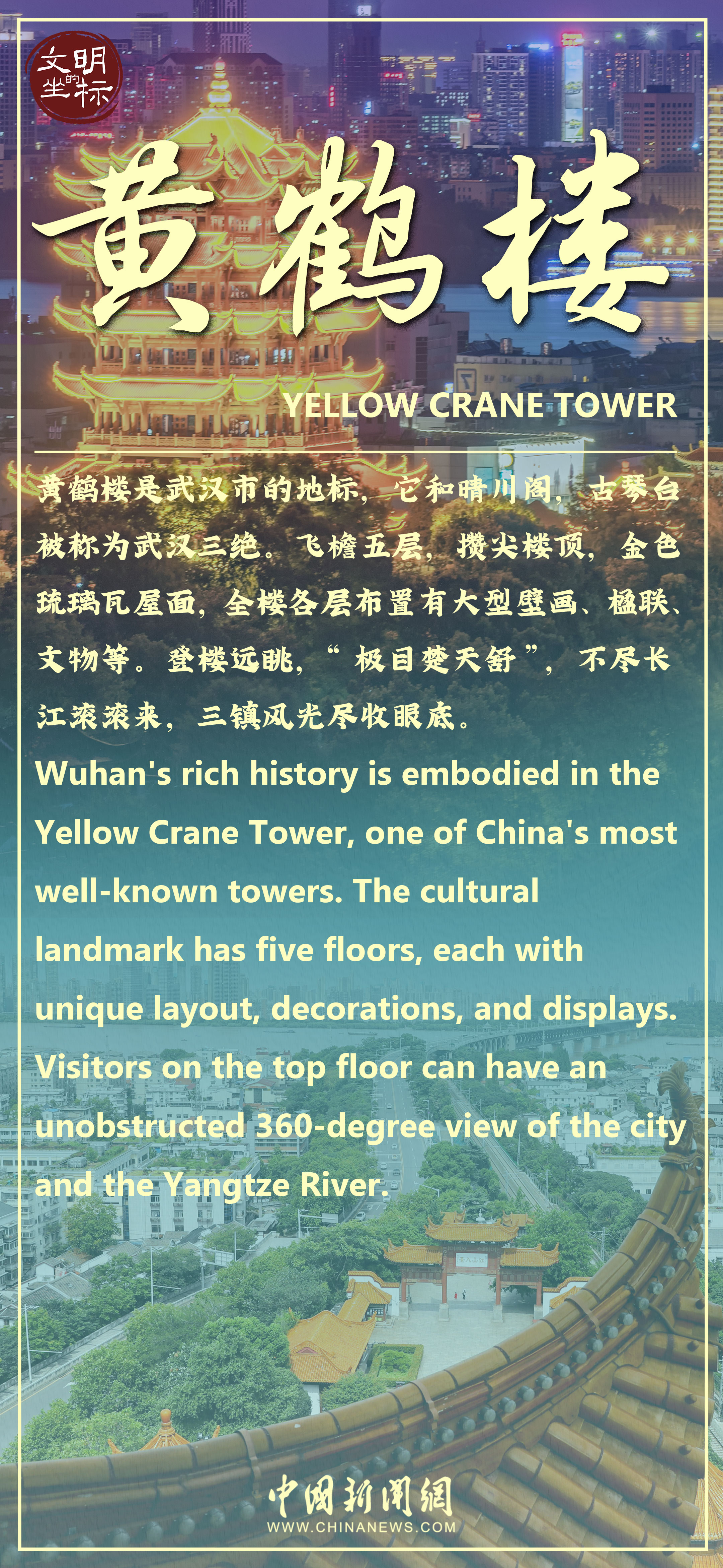 “昔人已乘黃鶴去,此地空余黃鶴樓。黃鶴一去不復返,白云千載空悠悠?!碧柗Q“天下江山第一樓”的武漢黃鶴樓,在歷史上曾是無數(shù)文人揮灑墨香的靈感源泉。與其相關的詩詞約有1500首,屈原行吟于此、岳飛填詞于此、李白擲筆于此……豐厚的文化內涵,令黃鶴樓成為“凝固的詩”“立體的畫”?!兑股宵S鶴樓》項目開啟了千年名樓沉浸式夜游新體驗,悠揚的旋律、炫酷的光影、古風古韻的歌舞,讓無數(shù)游客流連忘返。春光明媚,櫻花盛放,來武漢觀賞黃鶴樓的“櫻花版”新皮膚,感受千年名樓的非凡氣韻和文化精神。