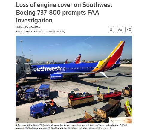美國西南航空公司表示,維修團(tuán)隊正在檢查出現(xiàn)事故的飛機(jī)。美國聯(lián)邦航空管理局稱,將對此事進(jìn)行調(diào)查。