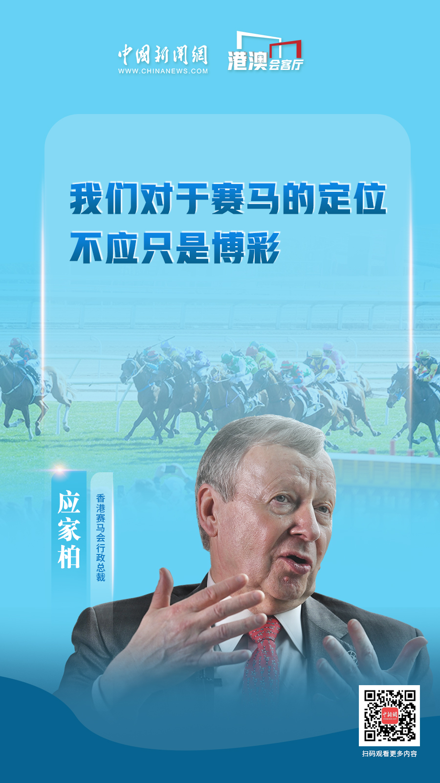 這是應(yīng)家柏出任香港賽馬會(huì)行政總裁的第17年,亦是《粵港澳大灣區(qū)發(fā)展規(guī)劃綱要》發(fā)布五周年,他帶領(lǐng)賽馬會(huì)緊握機(jī)遇,從“一國(guó)兩制”優(yōu)勢(shì),到粵港澳大灣區(qū)帶來的發(fā)展空間,繼續(xù)全方位地豐富著香港的賽馬精神。他如何看待香港賽馬事業(yè)發(fā)展現(xiàn)狀和瓶頸?未來拓展的方向又在何處?應(yīng)家柏近日接受中國(guó)新聞網(wǎng)“港澳會(huì)客廳”專訪,對(duì)這些問題一一作出解答。