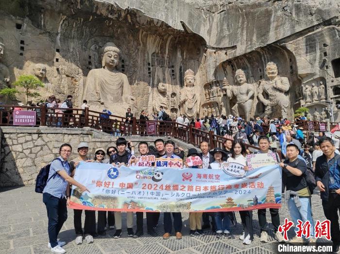 考察團在龍門石窟合影。中國駐東京旅游辦事處供圖
