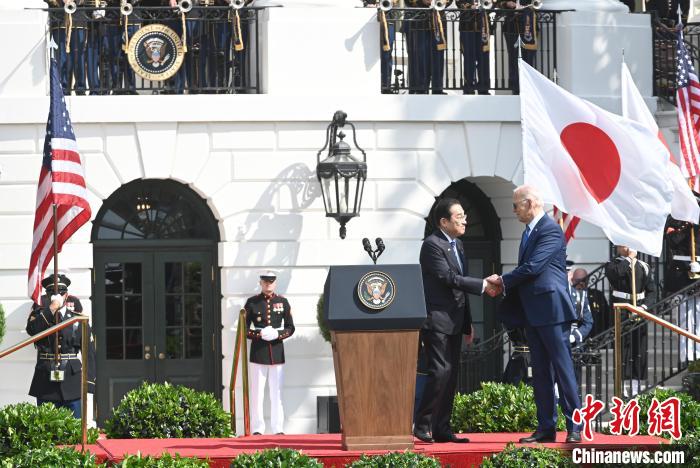 當(dāng)?shù)貢r(shí)間4月10日,美國(guó)總統(tǒng)拜登與來美國(guó)事訪問的日本首相岸田文雄在白宮舉行會(huì)晤。圖為雙方出席白宮歡迎儀式。中新社記者 陳孟統(tǒng) 攝