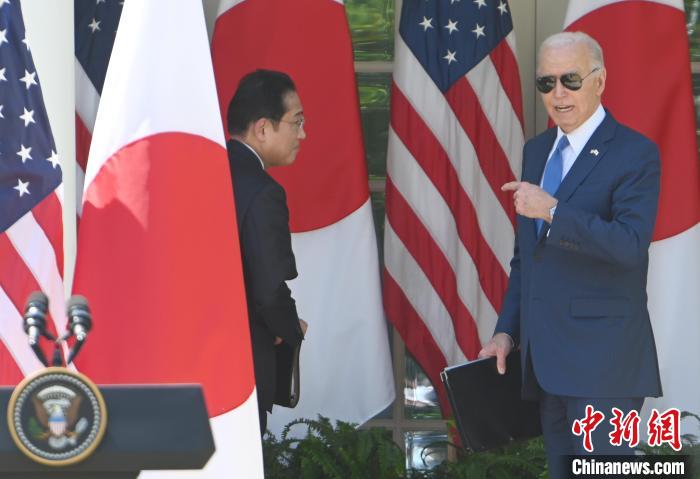 當(dāng)?shù)貢r(shí)間4月10日,美國(guó)總統(tǒng)拜登與來美國(guó)事訪問的日本首相岸田文雄在白宮舉行會(huì)晤。圖為雙方出席聯(lián)合記者會(huì)。中新社記者 陳孟統(tǒng) 攝