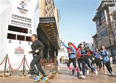 冬奧會(huì)倒計(jì)時(shí)牌前 市民長(zhǎng)跑“打卡”