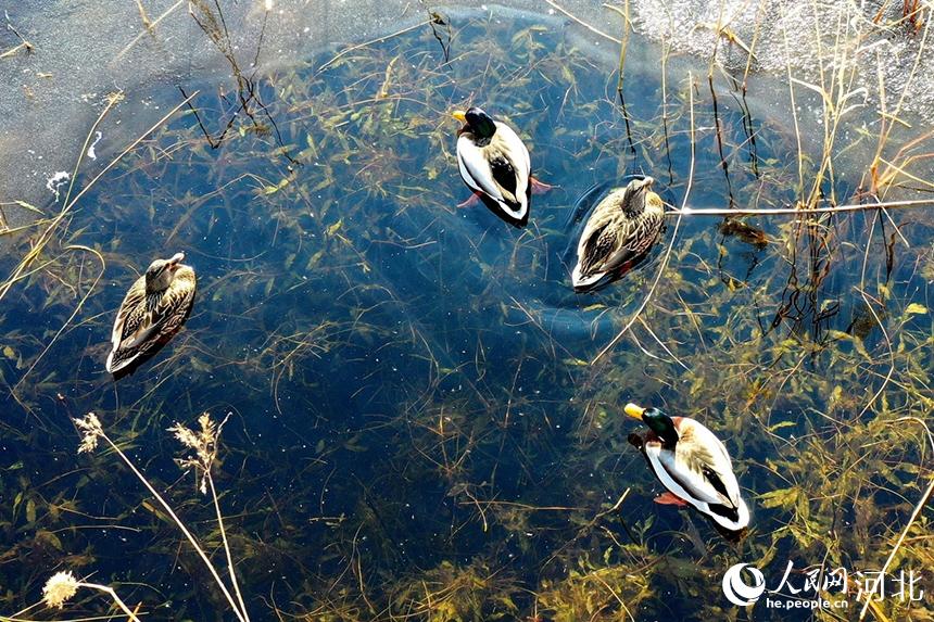 人民網(wǎng)石家莊1月6日電 隆冬時節(jié),走進(jìn)河北省文安縣趙王新河濕地公園,水面碧波蕩漾,清澈的河水吸引了上千只野鴨在此繁殖棲息。它們時而翩翩起舞、時而將頭潛進(jìn)水中覓食,嬉戲玩耍,很是怡然自得。