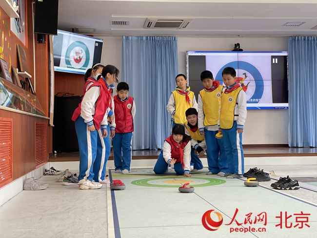海淀首個小學(xué)“冰雪教室”亮相,可進行冰壺、短道速滑等項目。人民網(wǎng) 董兆瑞攝
